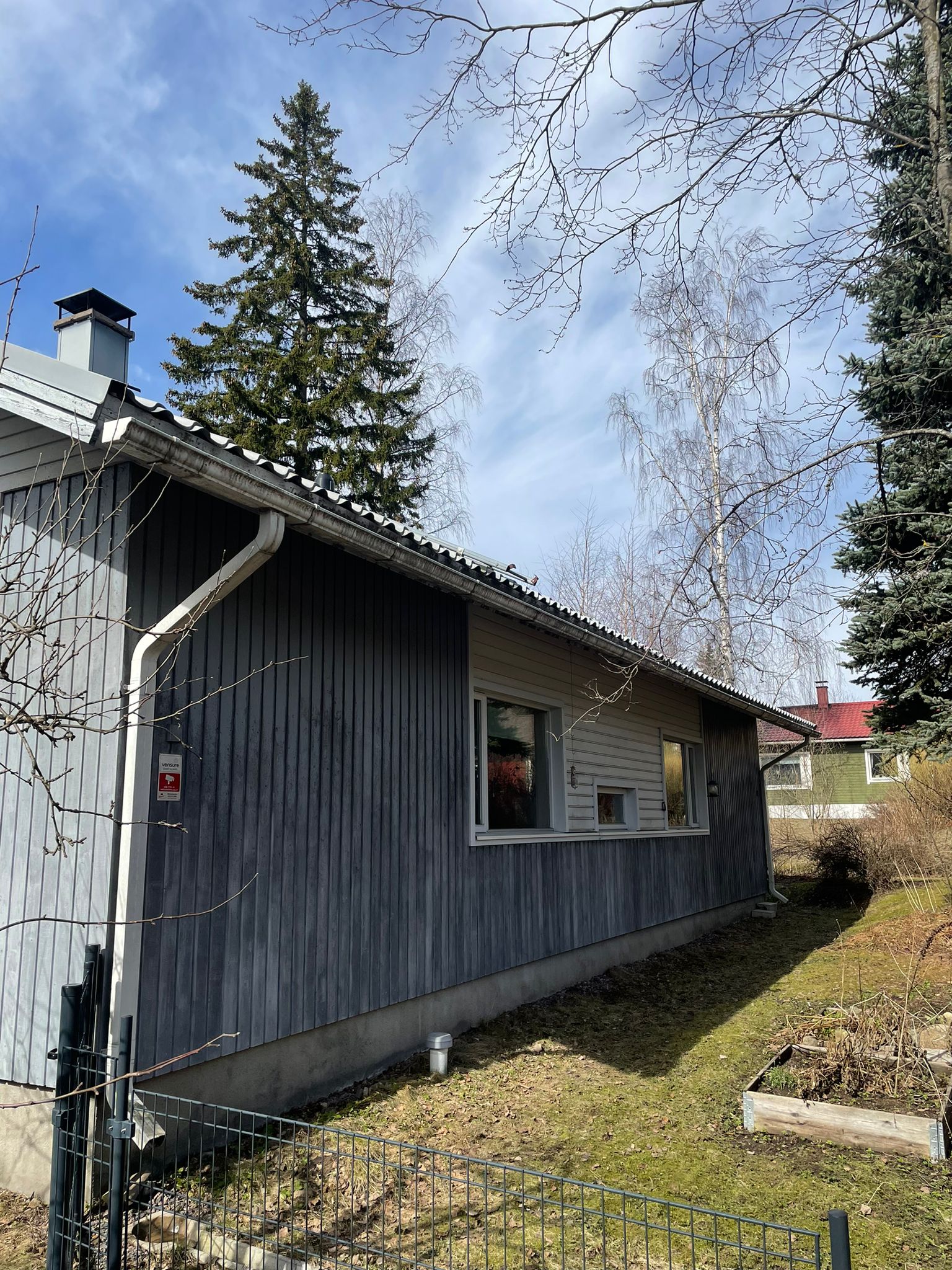 Lahonnut aita purettiin ja tilalle rakennettiin uusi. Aita viimeisteltiin maalaamalla alkuperäisellä sävyllä.