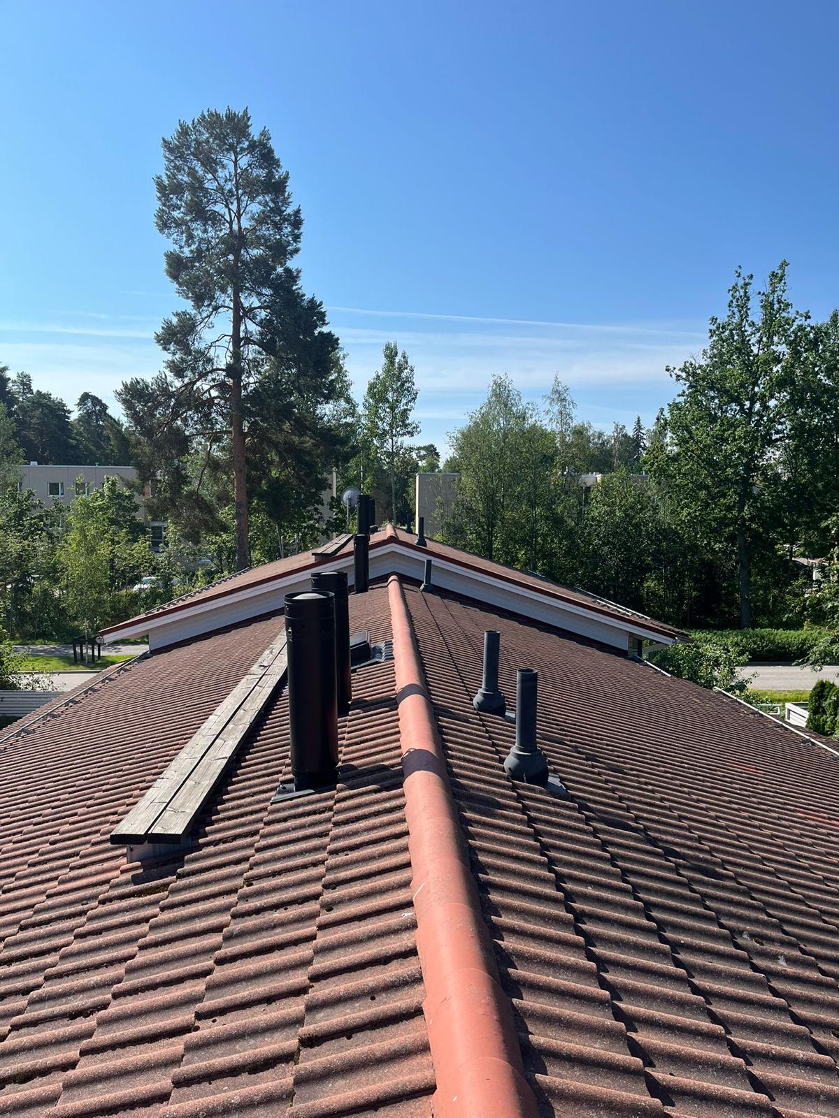 Tiilikatolle tehtiin laadukkaat huoltotoimet. Ensin katto puhdistettiin sammaleesta ja liasta. Seuraavaksi rikkoituneet tiilet vaihdettiin uusiin. Lopuksi kattoon laitettiin kasvustontorjunta-aine sekä pinnoite kahteen kertaan.