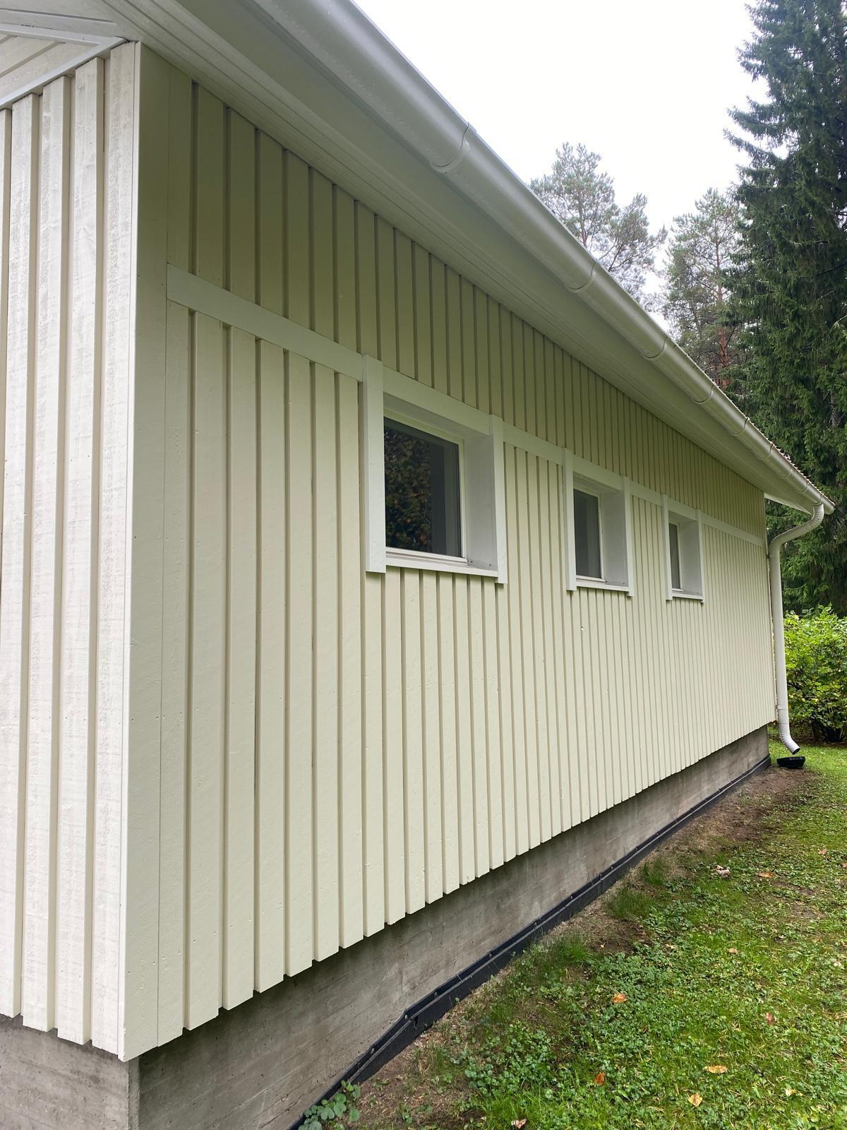 Öljymaali vaihtui vesiohenteiseen maaliin. Kohteessa tehtiin myös värinvaihto, joka toi ryhtiä taloon.